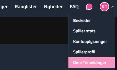 Åben brugermenuen i øverste højre hjørne og vælg "Dine tilmeldinger"